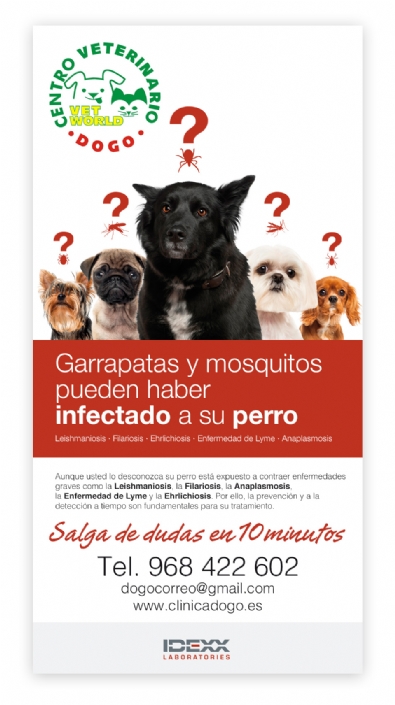 Durante el primer trimestre del año es tiempo de diagnosticar de forma precoz el contagio de determinadas enfermedades a nuestro perro a través de la picadura de mosquito (Leishmaniosis y Dirofilariosis) o garrapata (Ehrlichiosis, anaplasmosis y enfermedad de Lyme).