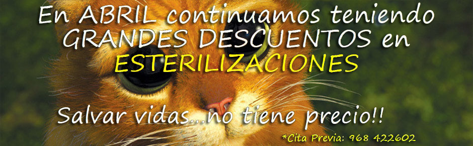 Aprovéchate de esta interesante oferta a tu animal de compañía todas las ventajas de esta sencilla cirugía. Pide cita llamándonos al teléfono 968422602 o contáctanos rellenando el formulario que podrás encontrar en la web en la pestaña «contactar».